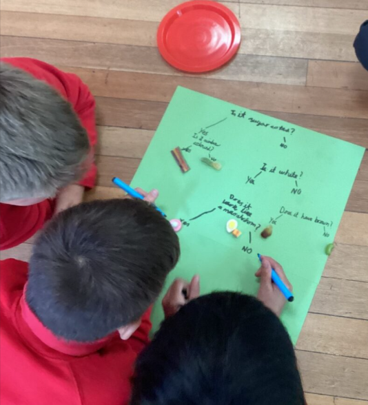 With support, we used sweets to help us to create questions so that we could classify and sort them. Then we had a go at creating our own branching keys with our friends.