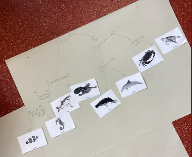 Once we understood how to create a branching key, we worked in small groups to classify living things.
