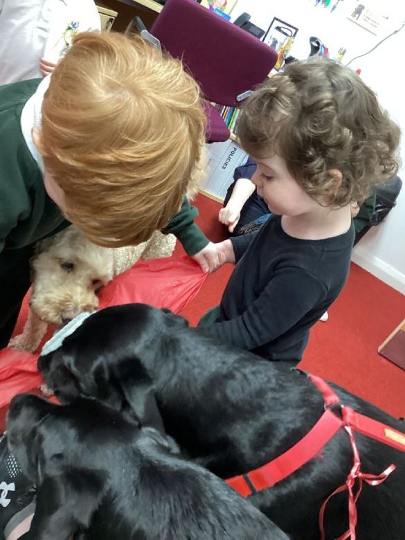 From morning greetings to classroom cuddles, playground strolls to story time snuggles – this is what a day in the life of us Dog Mentors looks like at St Saviour’s!