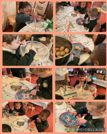 We provide children with a variety of healthy foods and drinks for snack, and children are involved as much as possible when preparing and making snacks. We will be doing lots of cooking and baking with the children. The children have 'continuous snack'. This means they can choose when to go for their snack, so they can really get into meaningful uninterrupted play and learning. This also helps children to develop a sense of independence and the opportunity to take responsibility for their own needs.