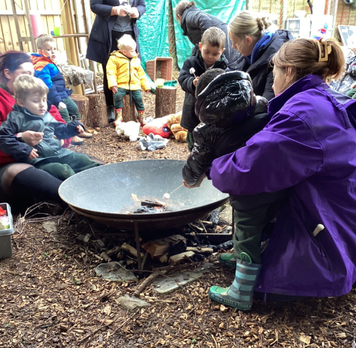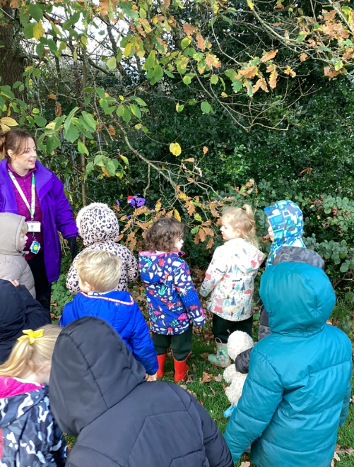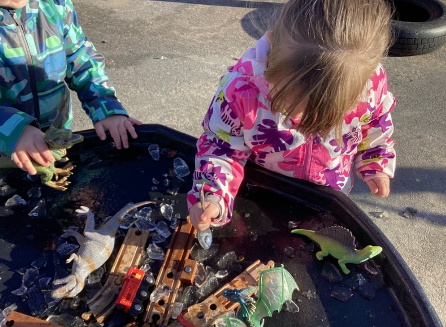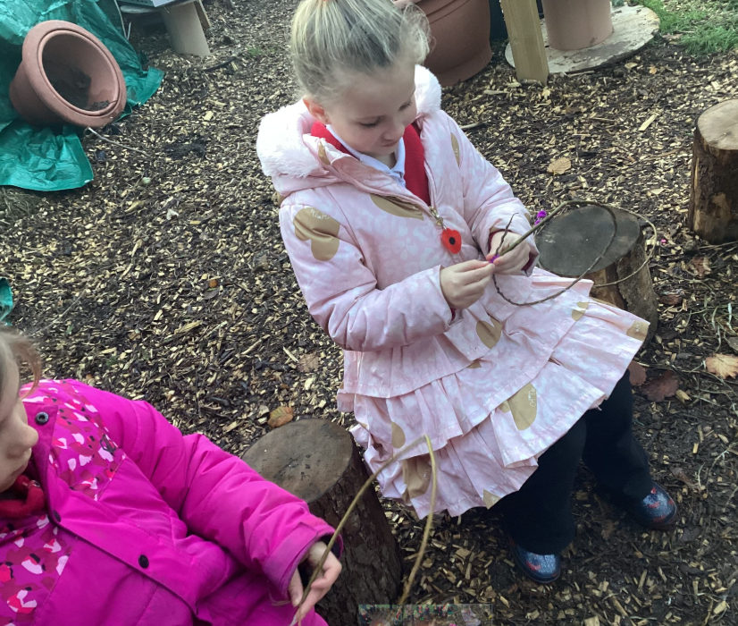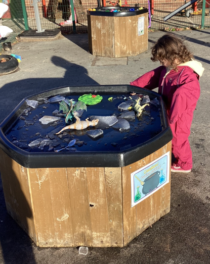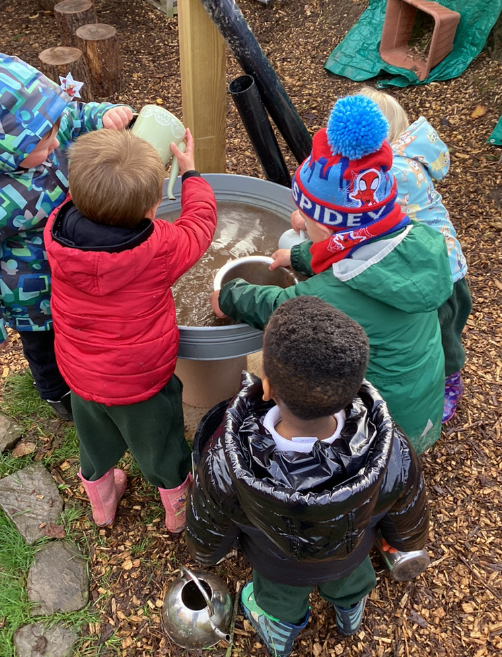 FS2 enjoy playing in the mud kitchen using natural materials.