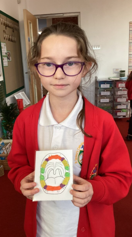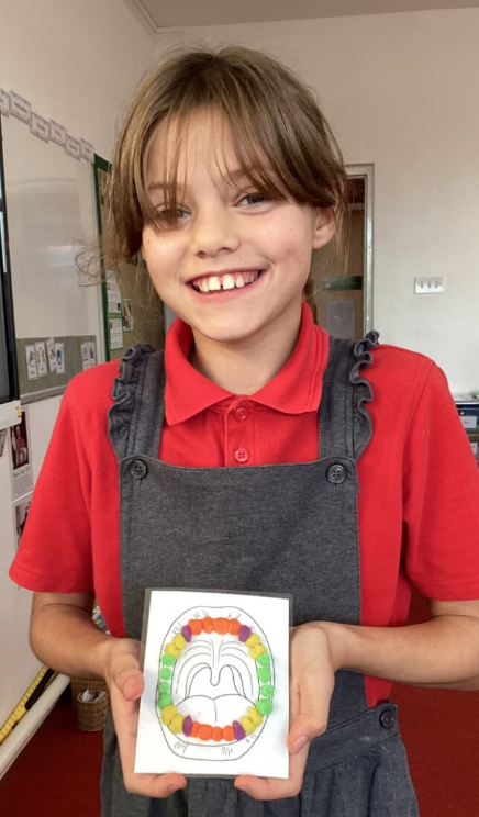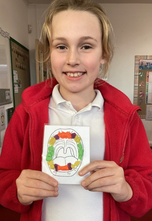 They learnt the different types of teeth and their functions. Children used play-doh teeth to show where they are in the mouth and how many of each type of teeth adults have.