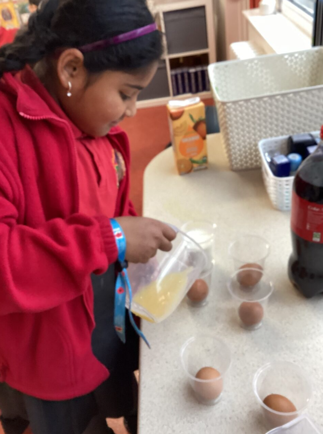 Year 4 have been investigating tooth decay by observing what happens to the eggshell (enamel) in the different liquids. They made predictions, observed changes over time and created a conclusion from their results.