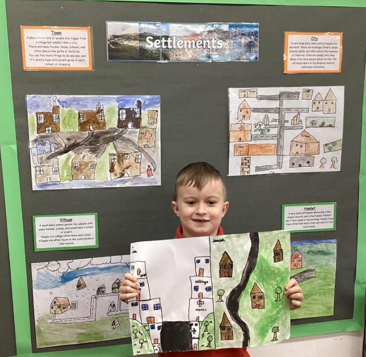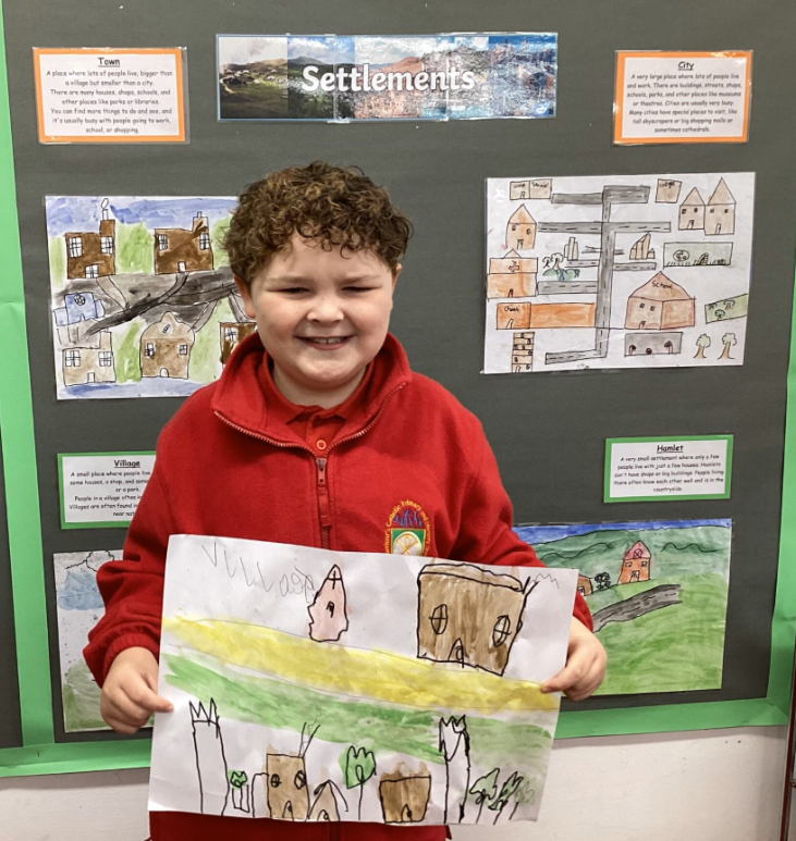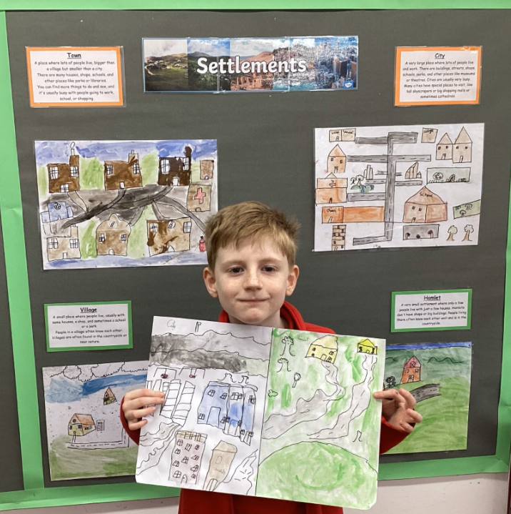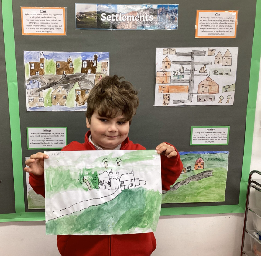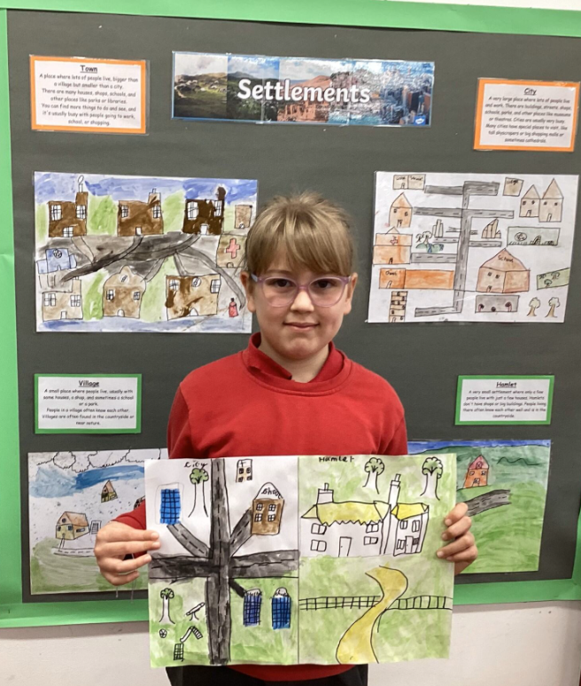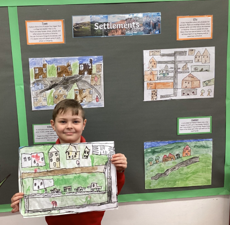 Year 3 have been creating their own settlement pictures to help them distinguish between different types of settlements and their features.