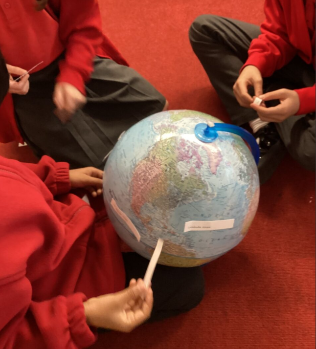 In Year 6's geography topic 'Spatial sense', children have learnt about map projection. They have used oranges to help them to understand how changing a 3D globe map to a 2D flat map can result in distortion.
