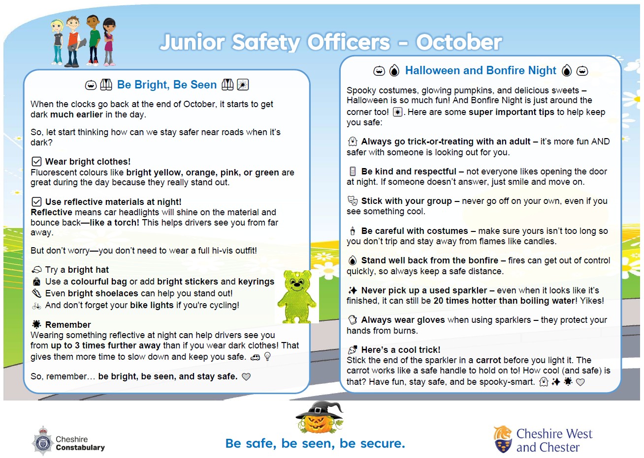 Two of our year 6 pupils represent our school as Junior Road Safety Officers.