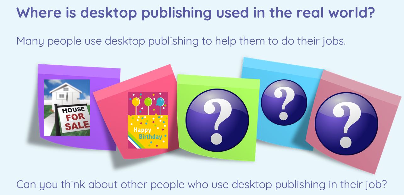 The children will learn key desktop publishing skills as they explore how text and images work together to share information. They will recognise that words and pictures can be edited and arranged in different ways, choose suitable page settings, and add their own content to create a simple publication. They will also learn how different layouts suit different purposes and begin to understand why desktop publishing is a useful tool for presenting information clearly and creatively.