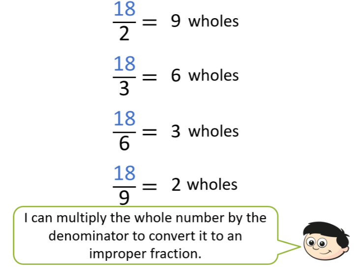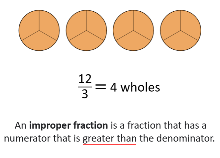 This half-term we are developing our understanding of fractions. We will be learning all about what makes a whole, how to partition a whole number, compare and order mixed numbers and convert mixed numbers to improper fractions.