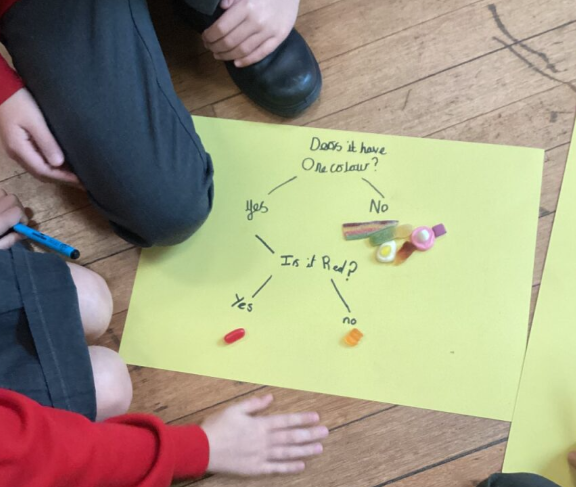 With support, we used sweets to help us to create questions so that we could classify and sort them. Then we had a go at creating our own branching keys with our friends.