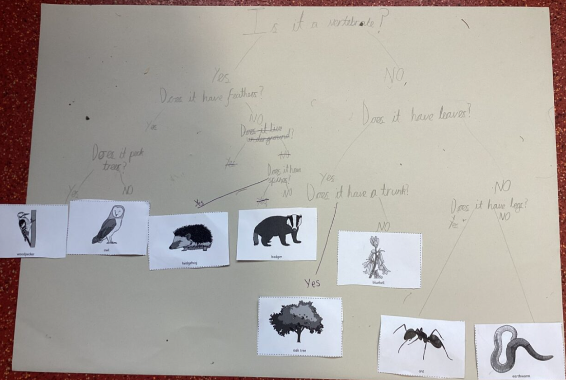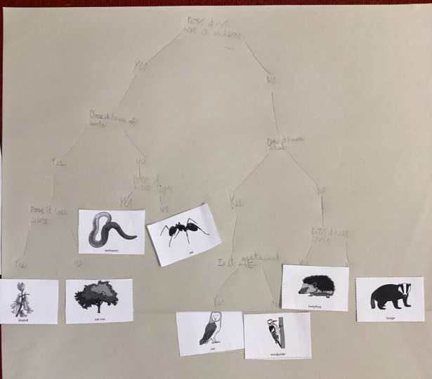 Once we understood how to create a branching key, we worked in small groups to classify living things.